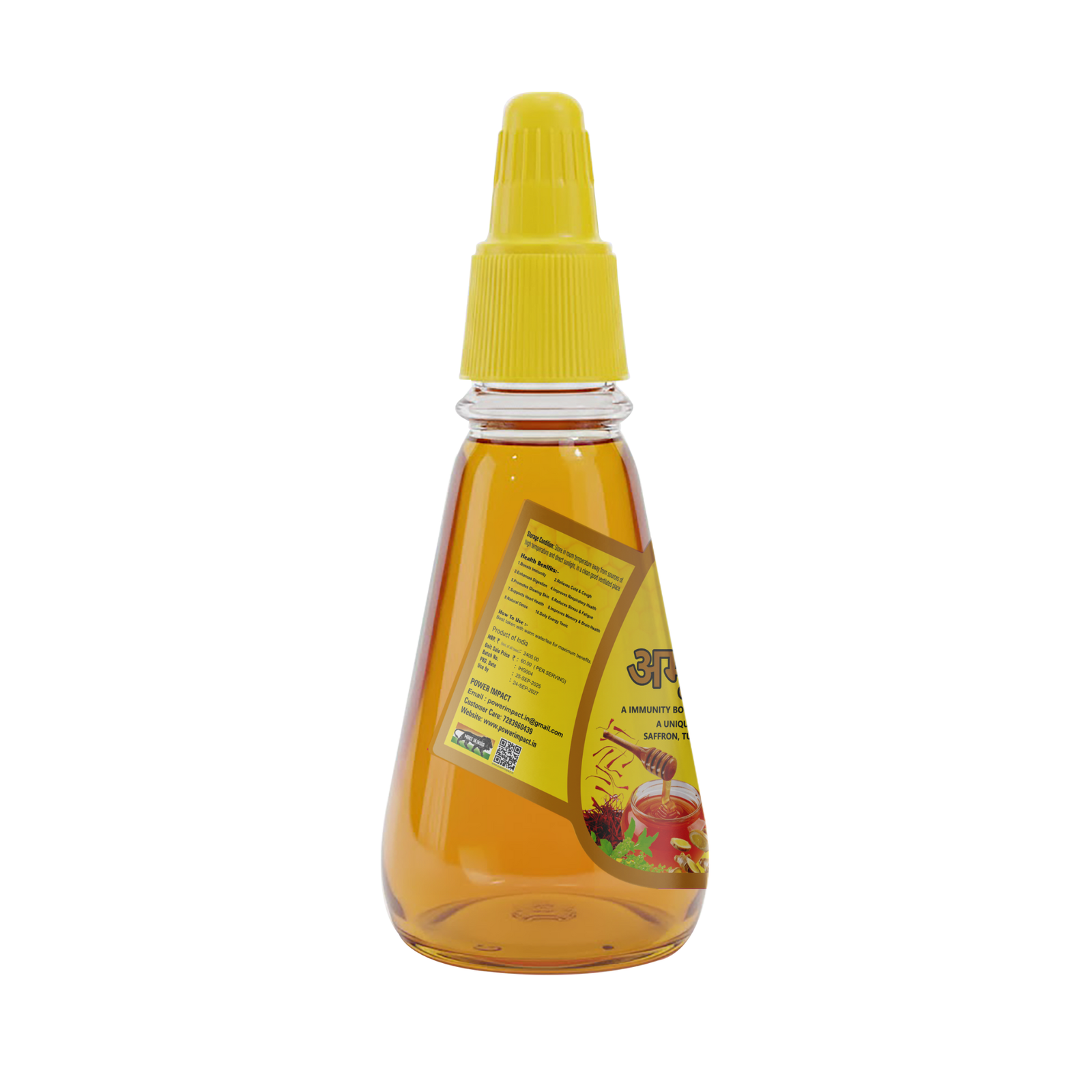 Power Impact Amrit Ras is a premium Unani-based immunity-boosting honey blend made with a powerful combination of saffron, tulsi, ginger, and pure honey. Inspired by traditional wellness practices, this formulation is designed to naturally support immunity, digestion, and overall vitality.